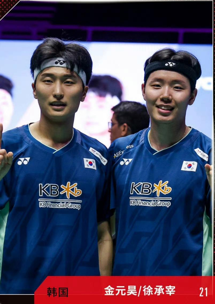 韩国队在男双项目实现包揽,头号种子金元昊/徐承宰作为世界第一组合,首轮轮空后,次轮直落两局晋级,1/4决赛21-18、21-16击败马来西亚组合,半决赛轻取国羽组合任翔宇/何济霆。